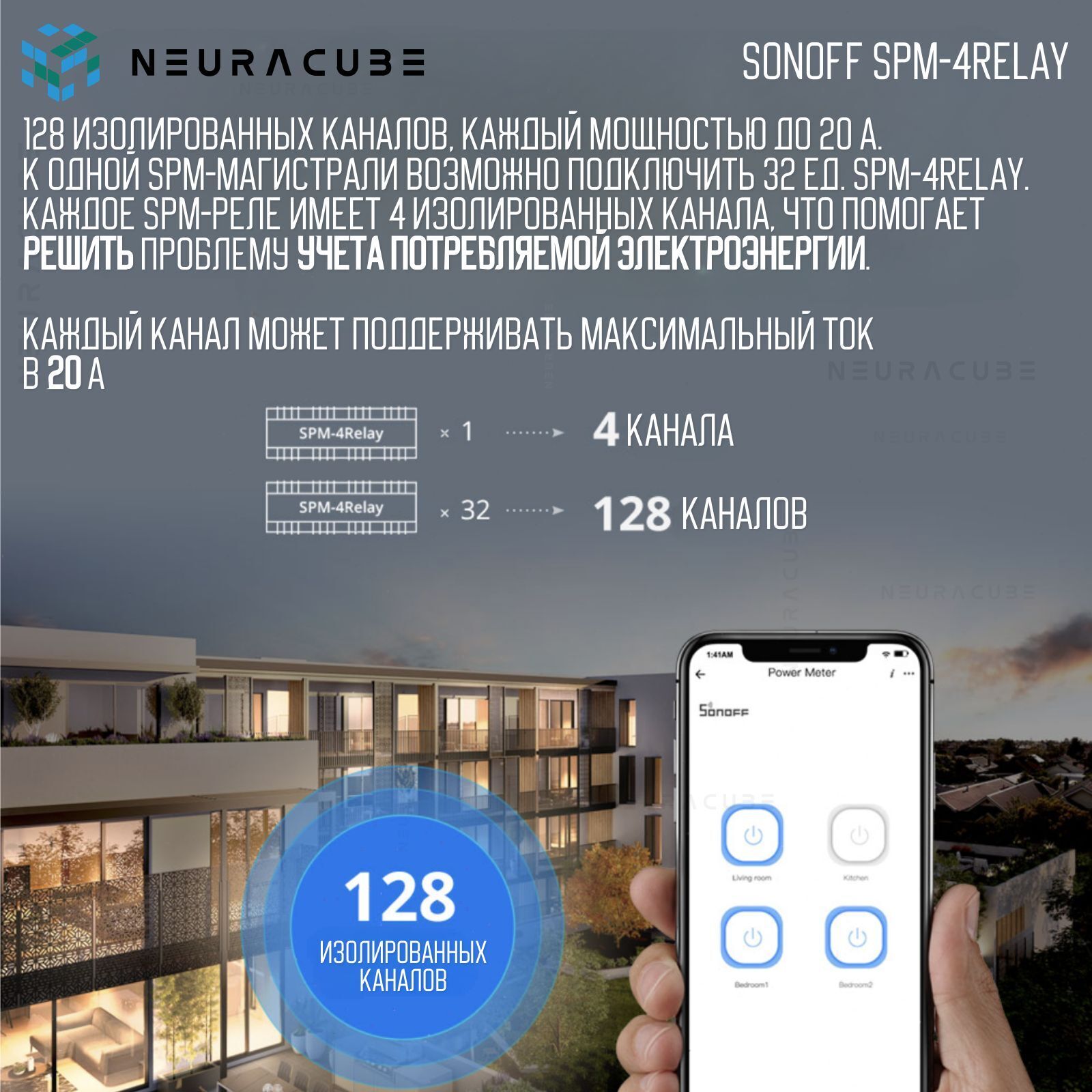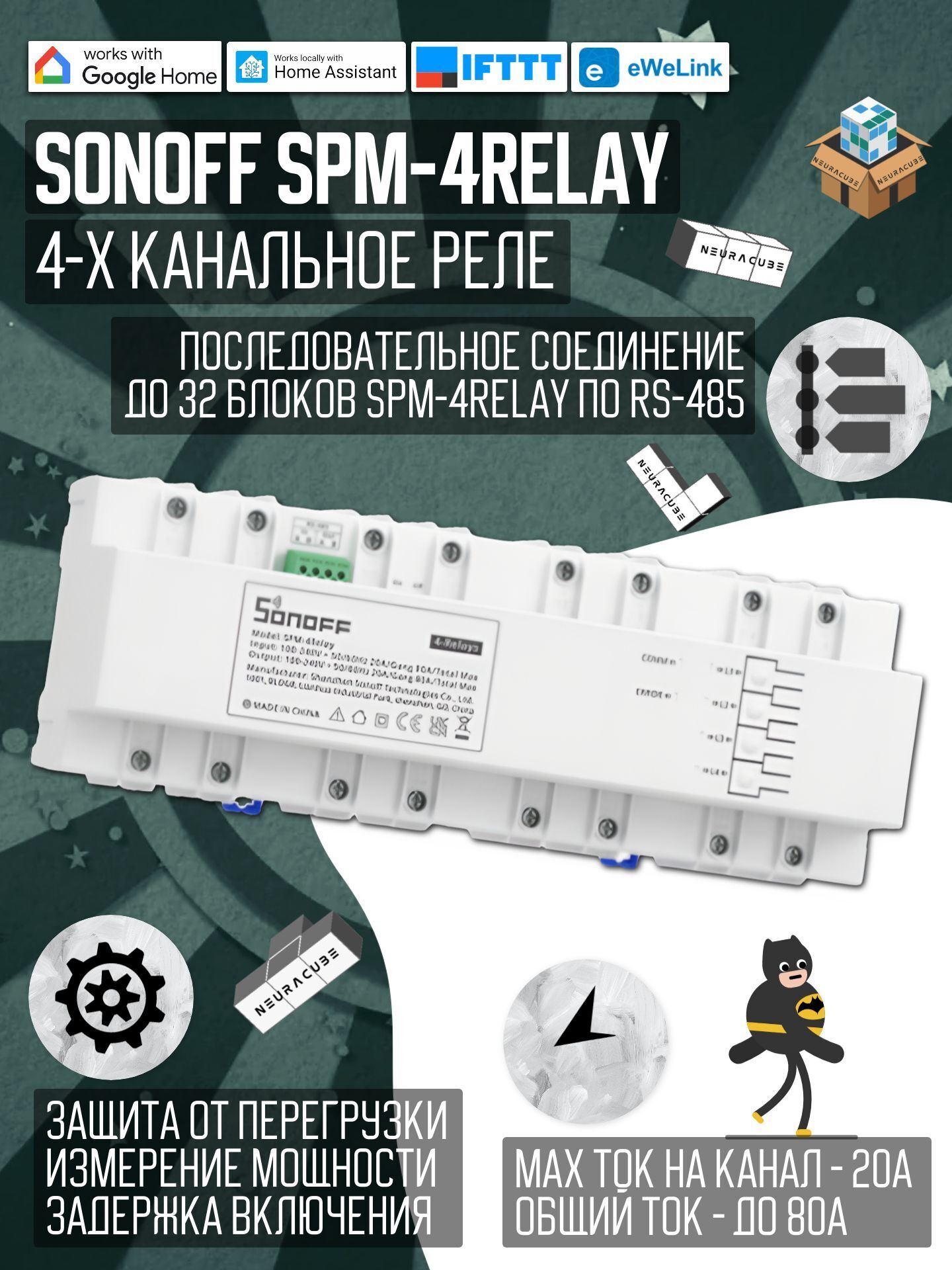 Превратите ваш дом или офис в умное пространство с модулем Sonoff SPM-4Relay! Управляйте четырьмя электроприборами или нагрузками одновременно через интернет, приложение или голосовые команды.