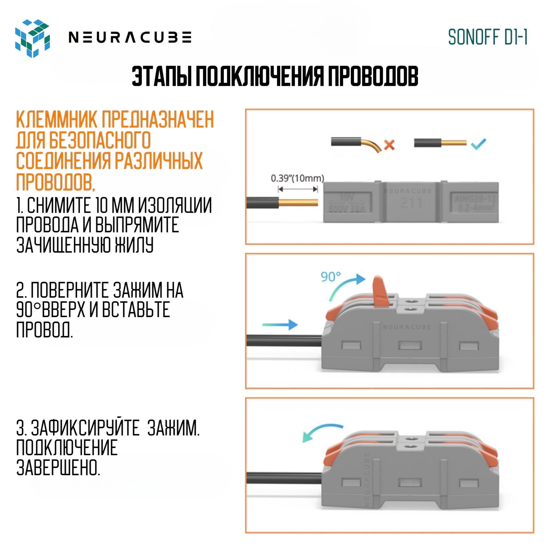 SONOFF D1-1 — практичное решение для безопасного и быстрого подключения проводов.