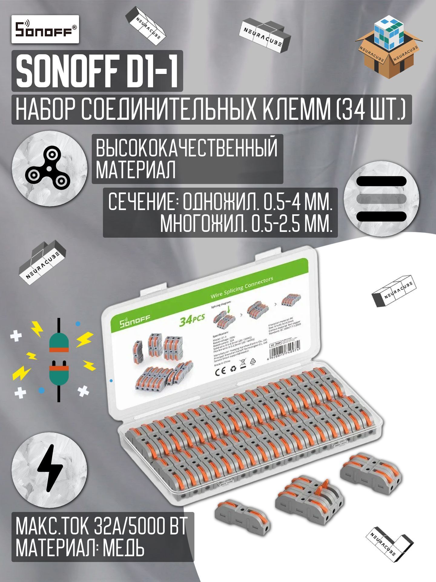 Надёжные клеммы для быстрого и безопасного соединения проводов при установке умных устройств, розеток, освещения и других электрических приборов.