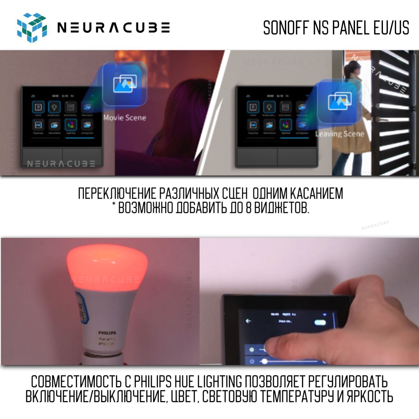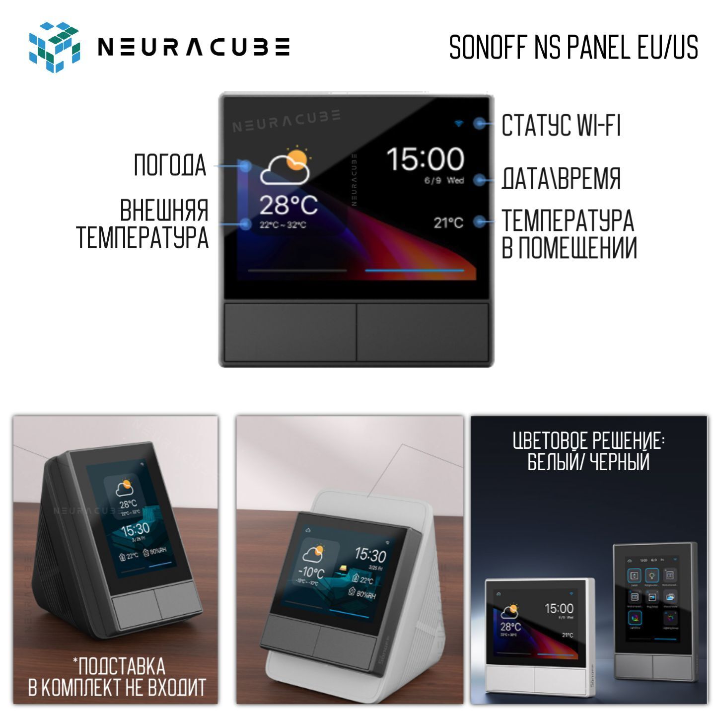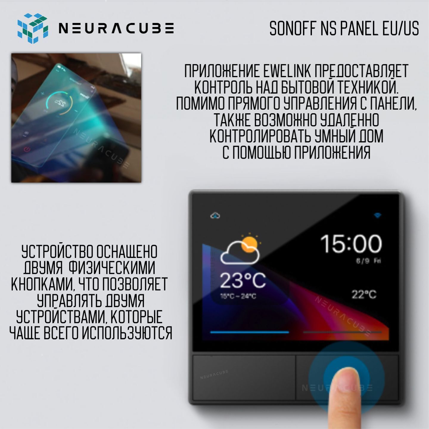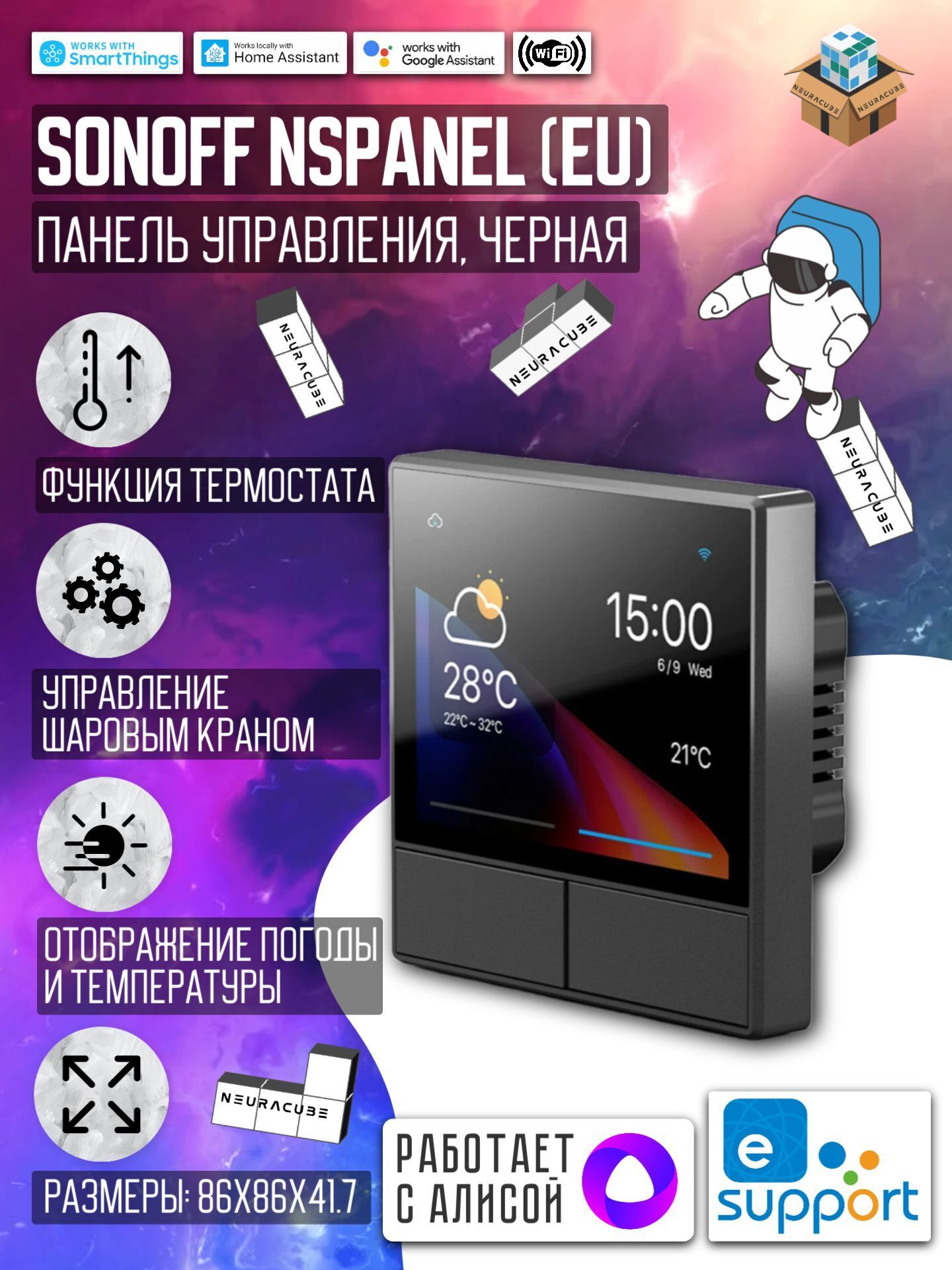 SONOFF NSPanel — это многофункциональная интеллектуальная настенная панель, объединяющая управление сценариями, термостат, переключатели и мониторинг домашней среды в одном устройстве. Она превращает ваш дом в удобное и современное пространство с возможностью автоматизации.