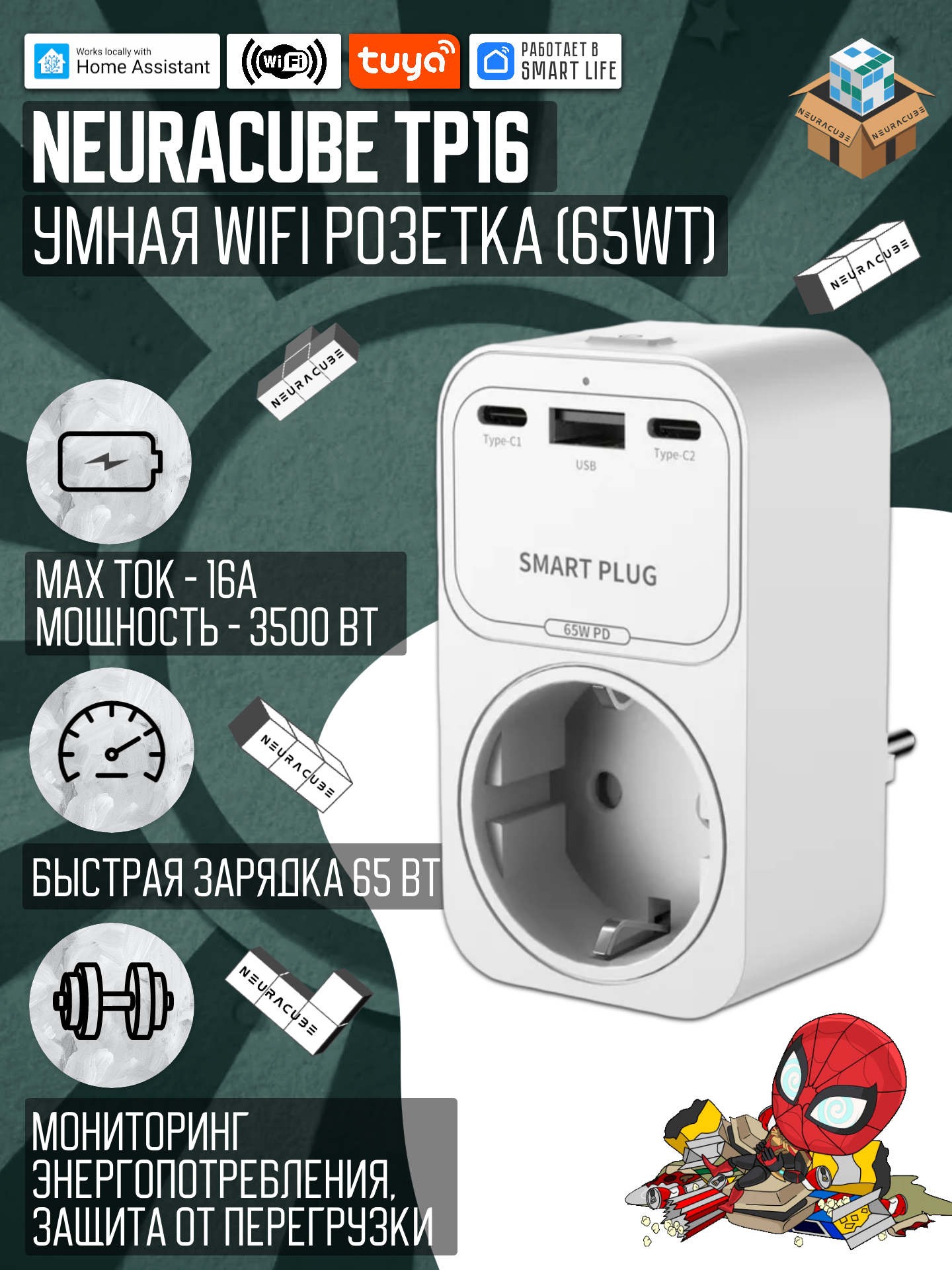 Две независимо управляемые розетки. Позволяет одновременно подключать и заряжать до 4 устройств с помощью адаптера.