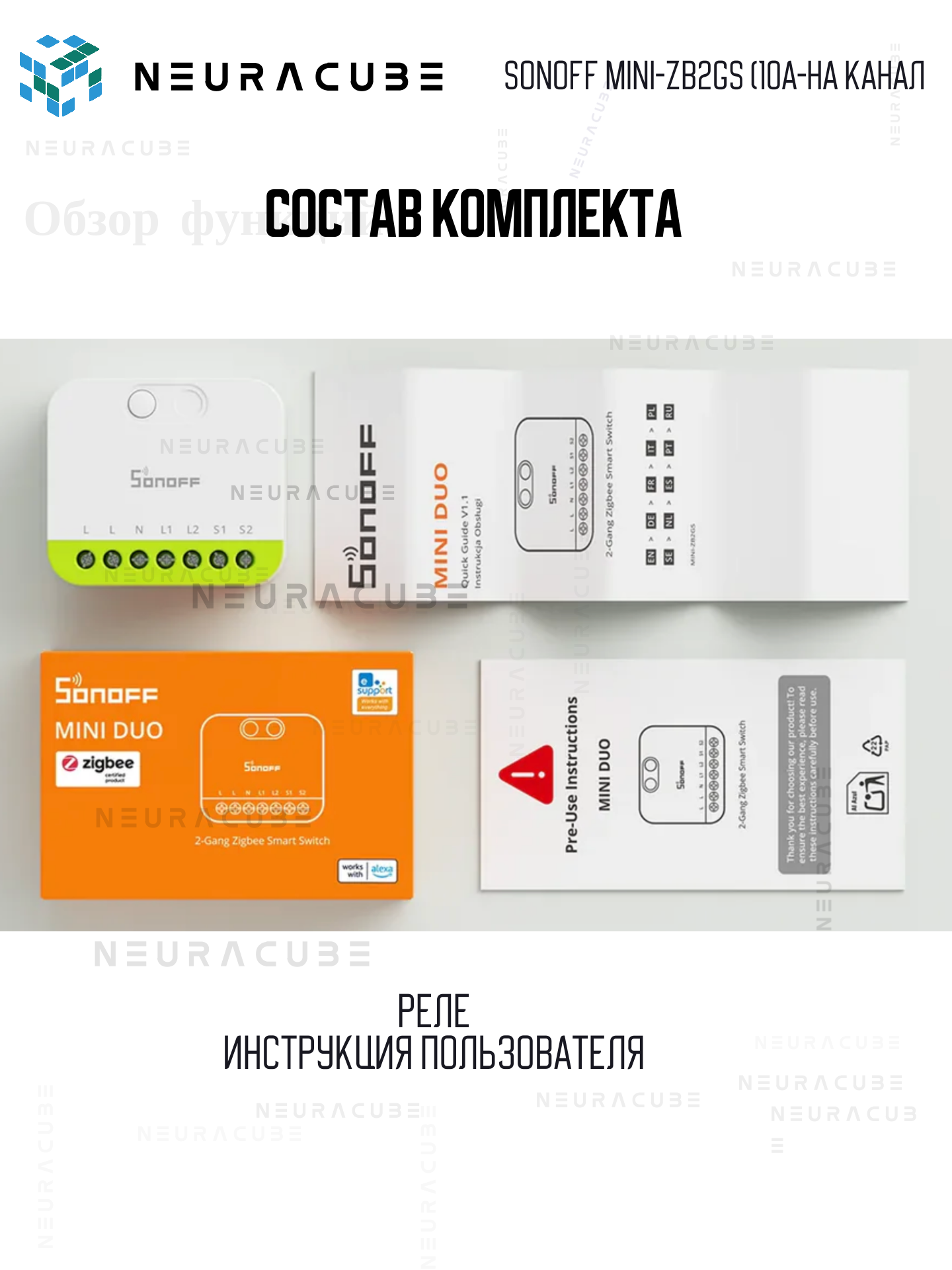 Комплектация: 📦 • Умное реле SONOFF MINI-ZB2GS — 1 шт. • Инструкция по эксплуатации — 1 шт.