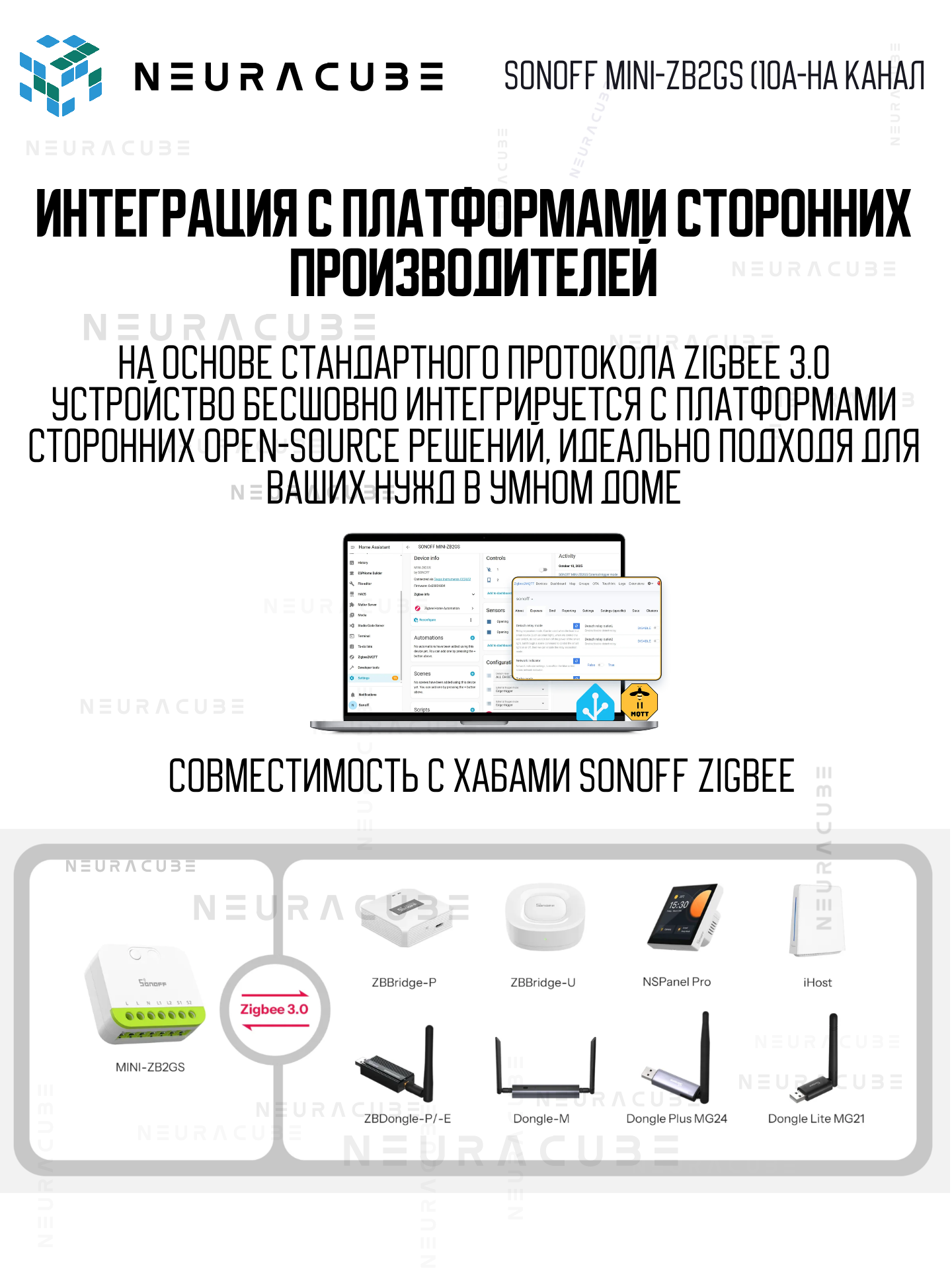 🔹 Протокол Zigbee 3.0: Обеспечивает молниеносный отклик, высокую стабильность связи и минимальное энергопотребление. Работает через шлюзы Zigbee (SONOFF ZBBridge, системы с поддержкой Zigbee 3.0).