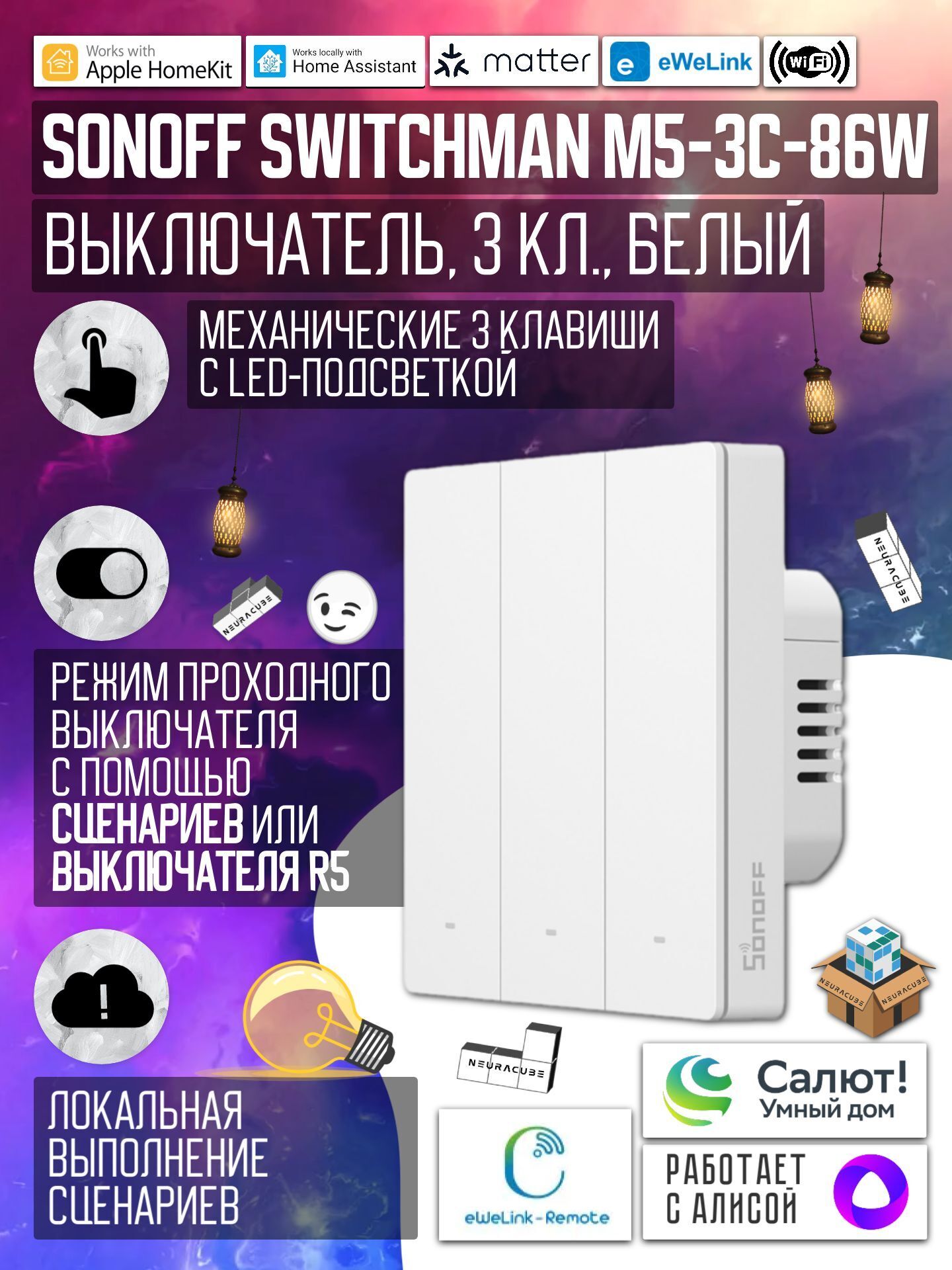✨ SONOFF M5-1C-86W — надежное и гибкое решение для управления освещением в умном доме, обеспечивающее удобство, безопасность и современные возможности автоматизации.
