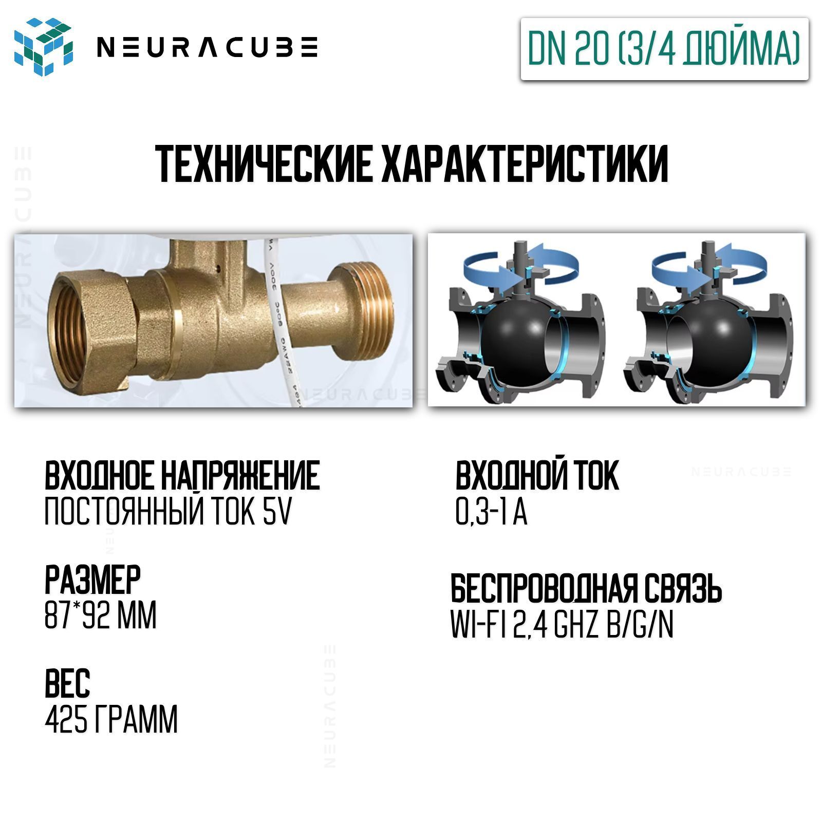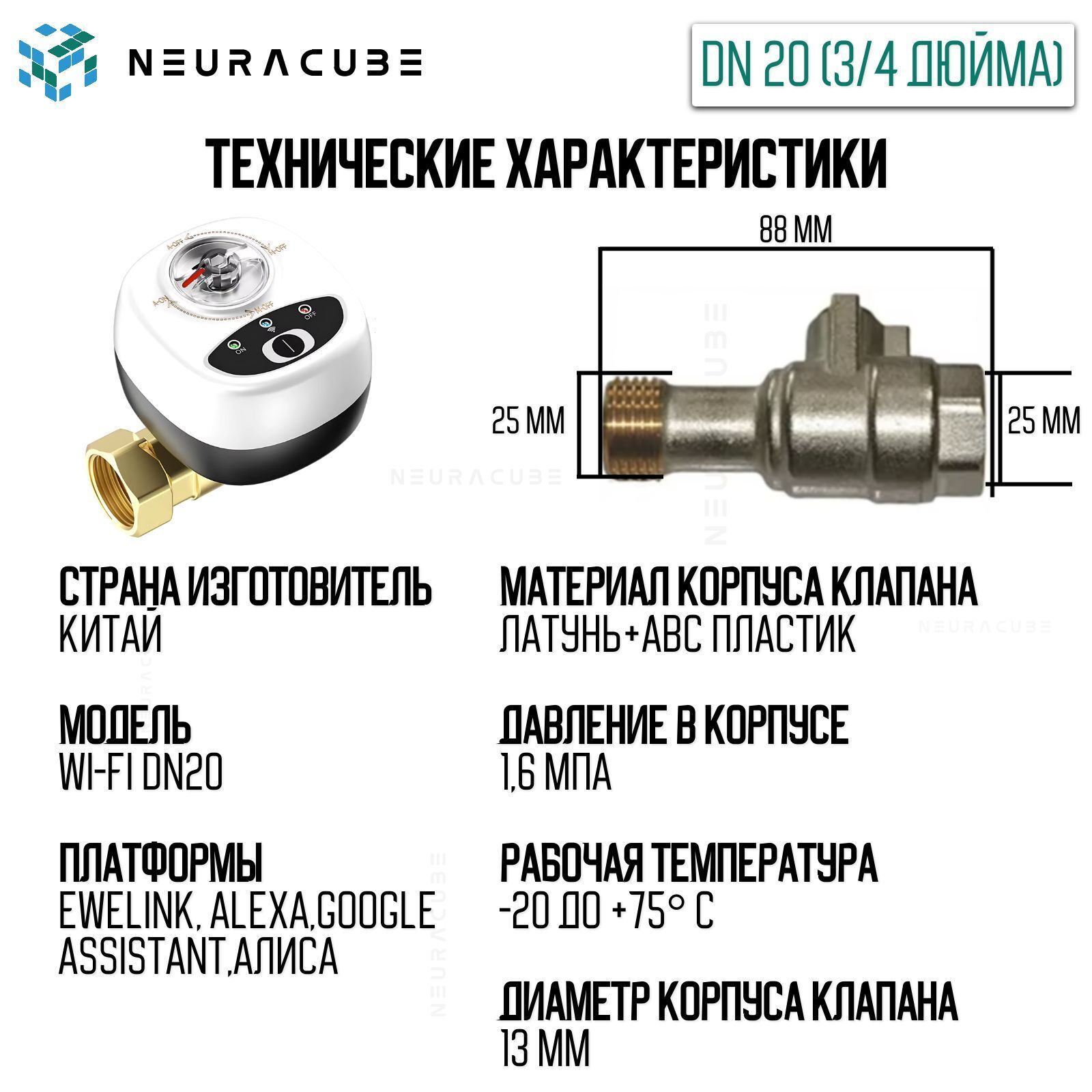 💧 Умный WiFi шаровый кран с электроприводом DN20 (3/4")