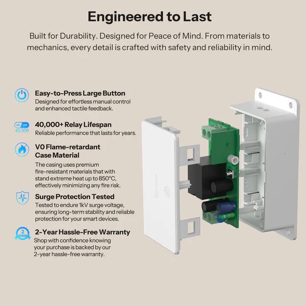 Забудьте о хаосе из разных приложений и замкнутых систем! BASIC-1GS MATTER — это универсальный ключ к настоящему умному дому будущего. Подключайте любую технику (свет, вентиляторы, обогреватели, кофеварки) и управляйте ею через Apple Home, Google Home, Amazon Alexa и другие платформы одновременно — без блокировок и безоблачной зависимости!