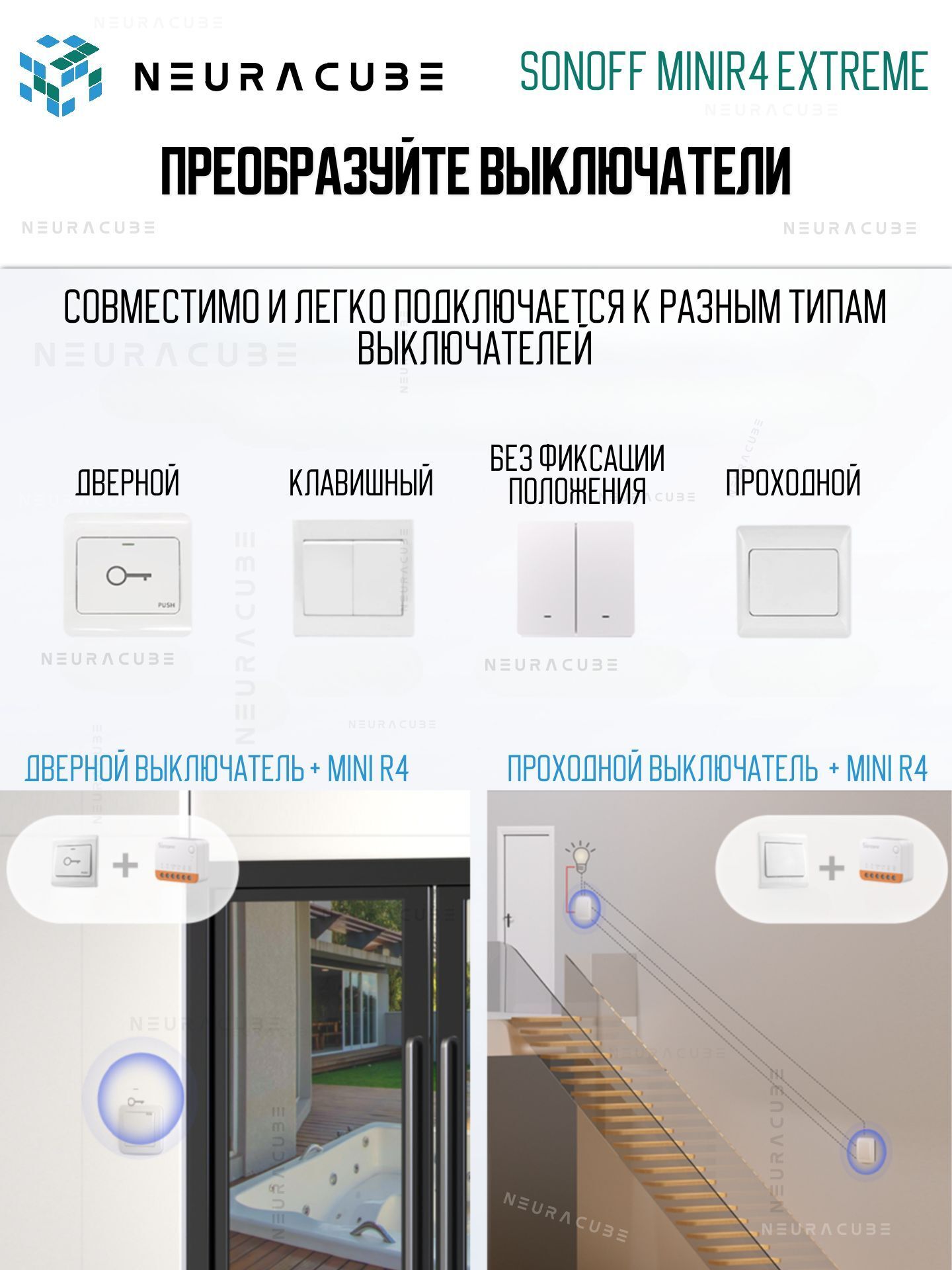 ✅ Освещение – скрытый монтаж без замены выключателей.