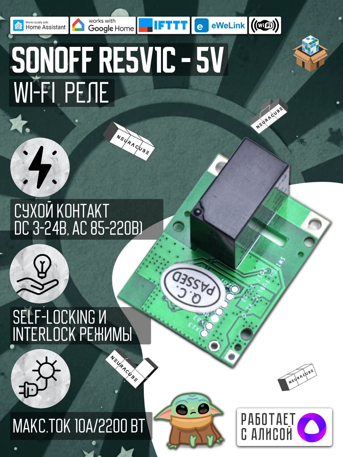 Управляйте вашими устройствами дистанционно с помощью Sonoff RE5V1C — миниатюрного релейного модуля с Wi-Fi и поддержкой приложения eWeLink. Идеально подходит для DIY-проектов и умного дома.