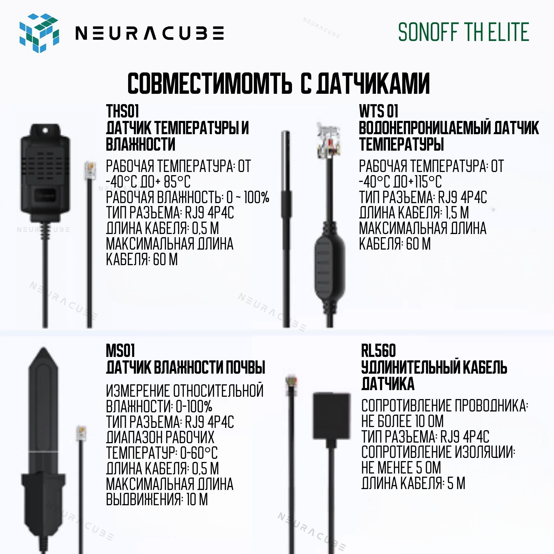 Работает с датчиками Sonoff THS01, DS18B20, MS01 (через кабель RL560).