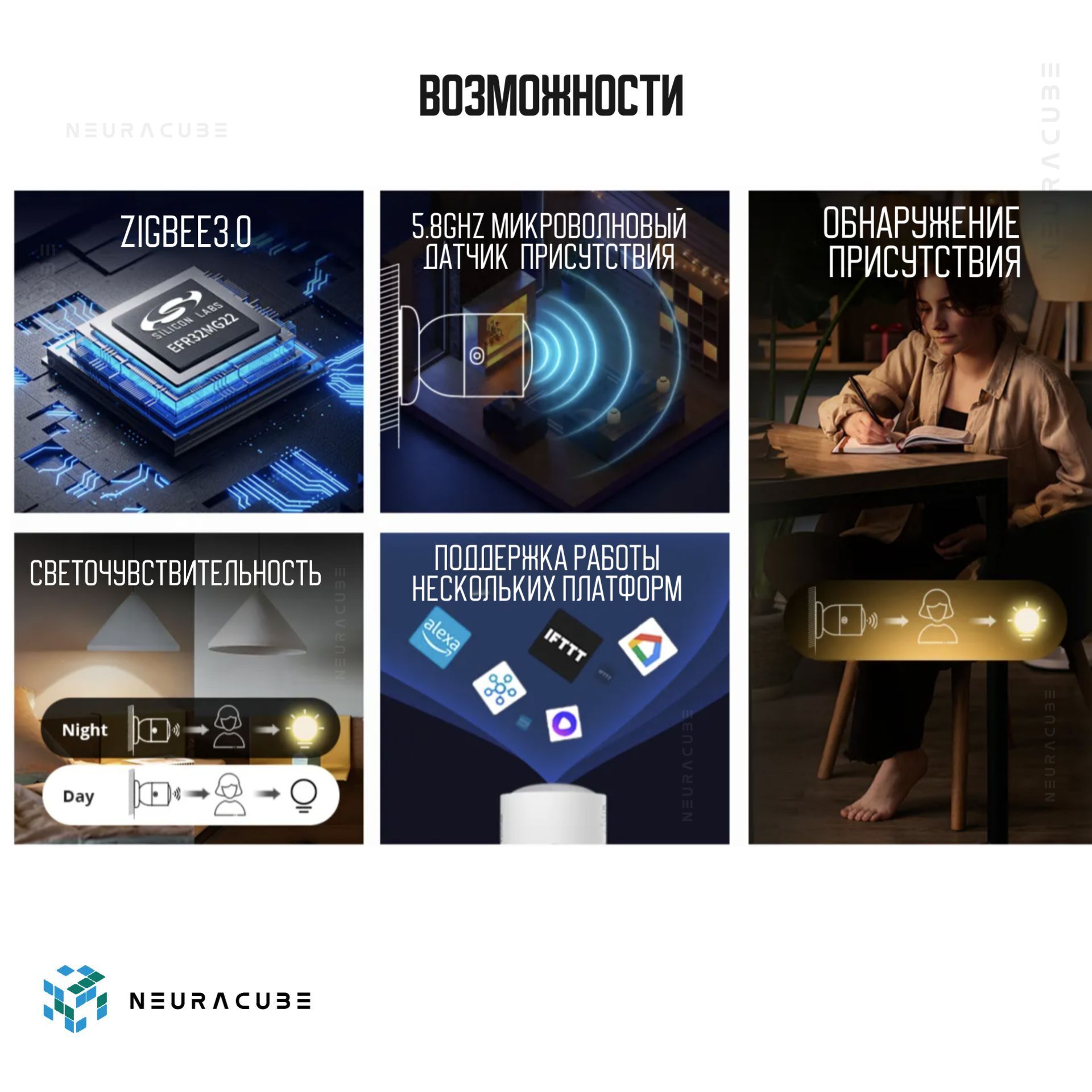 Создайте умный дом с автоматическим управлением светом и энергосбережением. Фиксирует даже малейшие движения, включая дыхание и пульсацию.