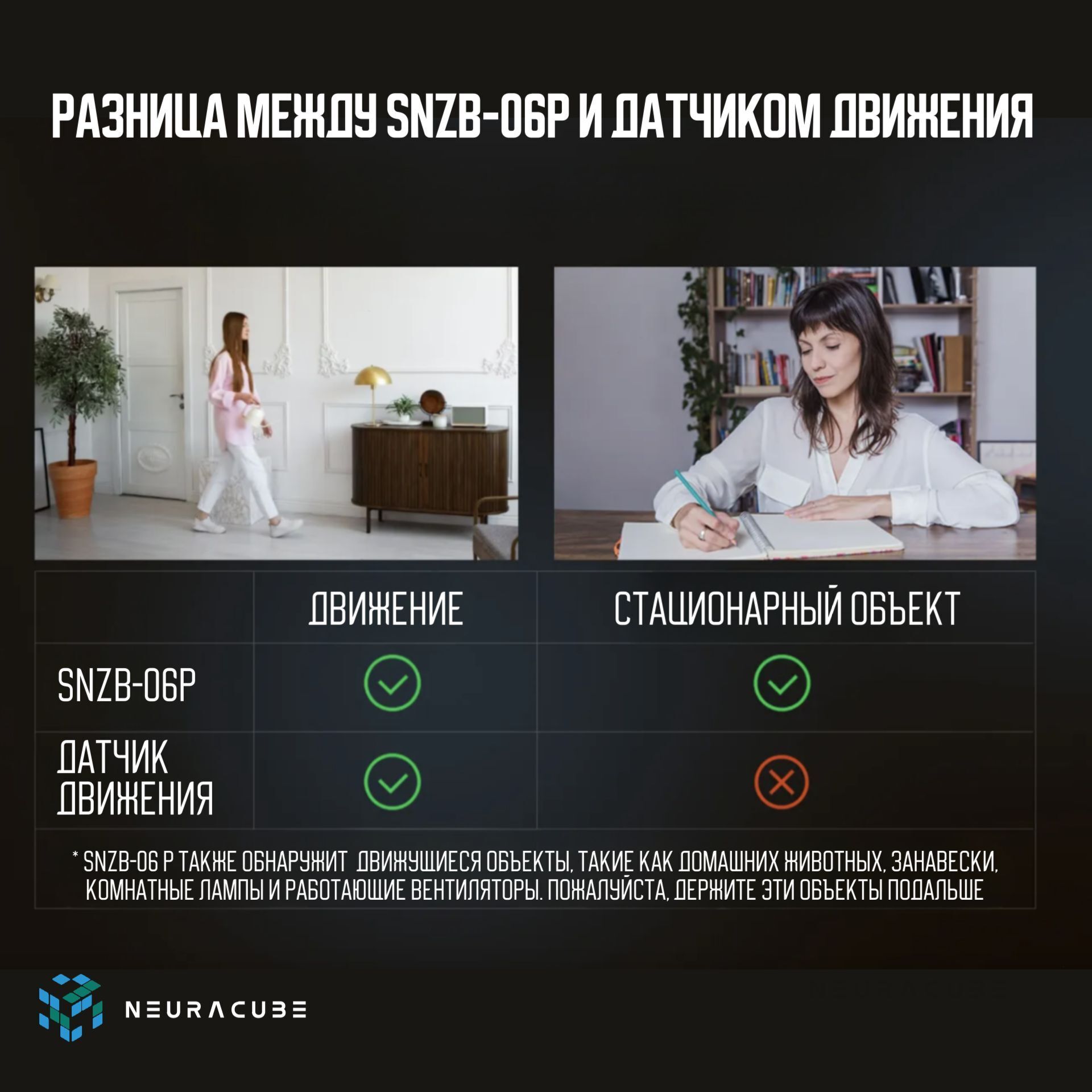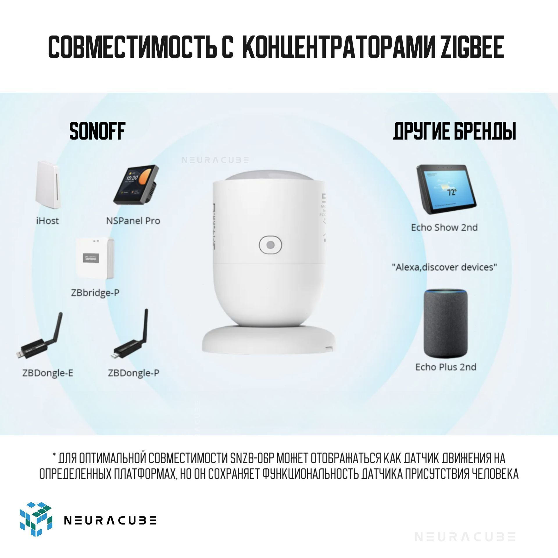 🔹 Sonoff SNZB-06P — датчик присутствия с микроволновым радаром 5,8 ГГц