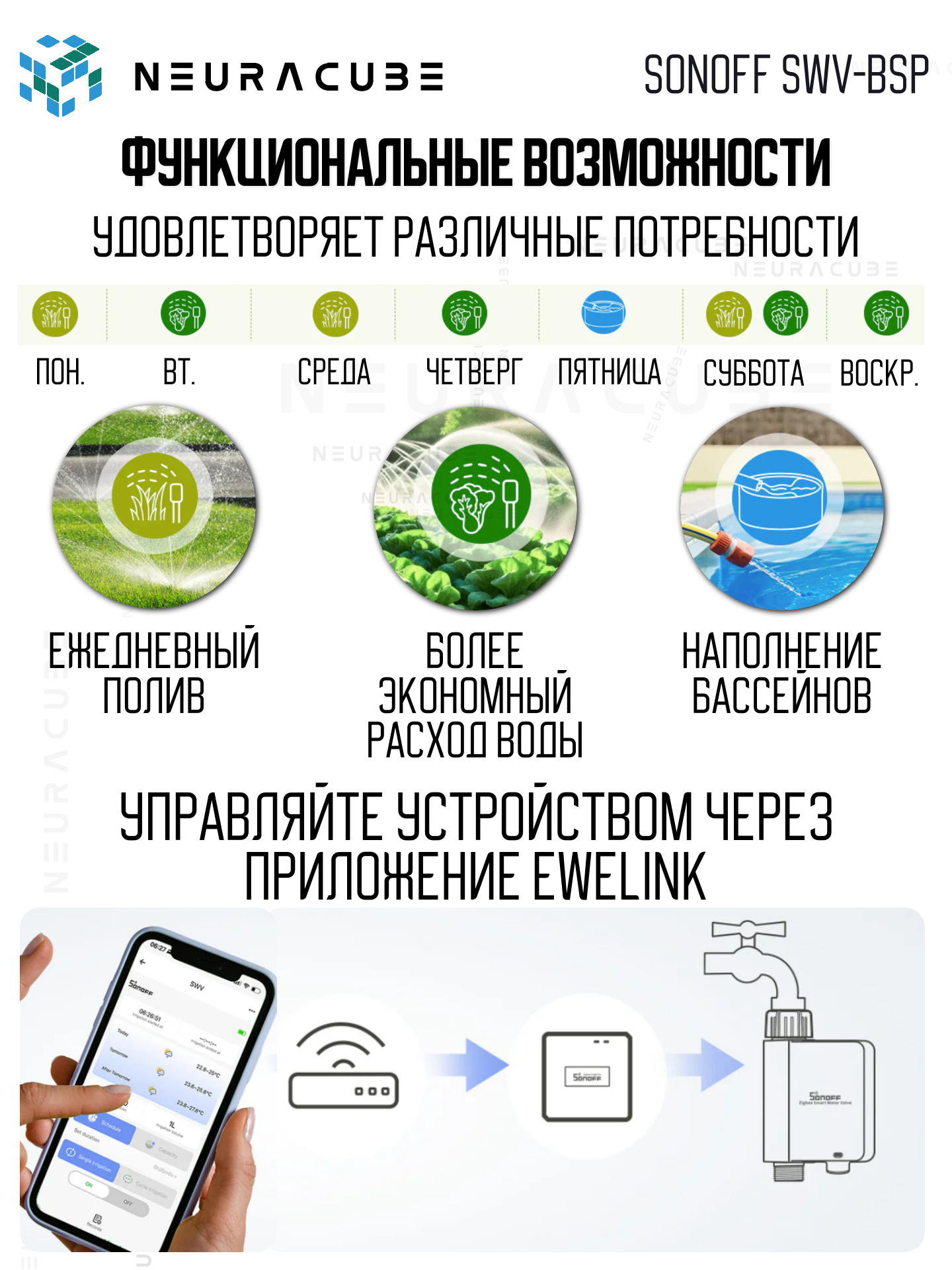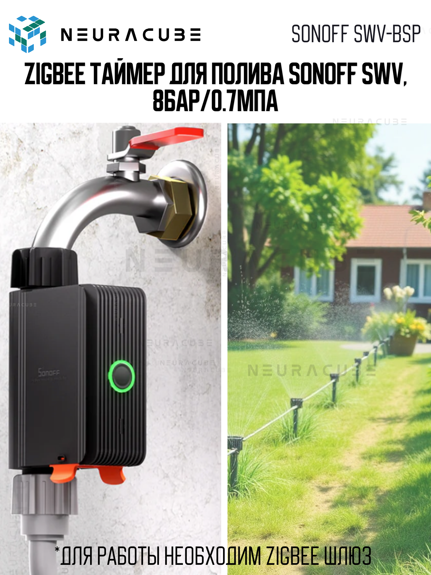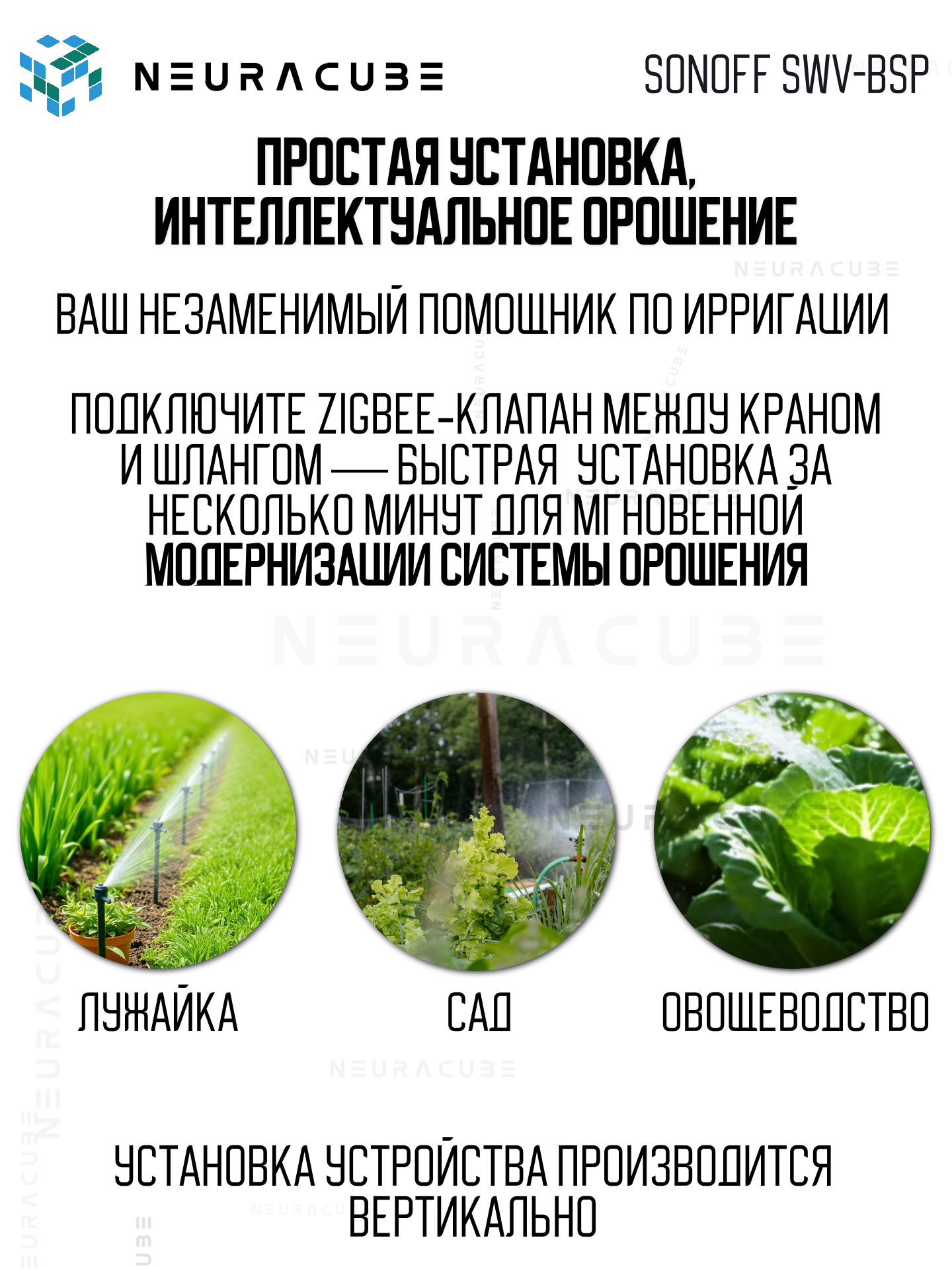 Sonoff SWV — это умный таймер для полива, который подключается по протоколу Zigbee и позволяет автоматизировать управление подачей воды в саду, теплице, на газоне или при поливе комнатных растений.