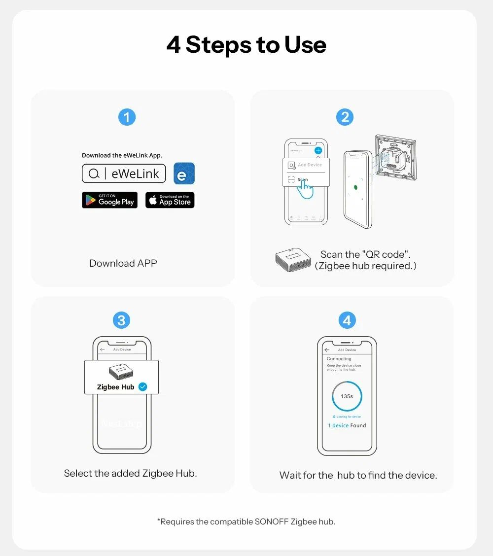 ⚠ Для работы требуется Zigbee-шлюз SONOFF (приобретается отдельно)